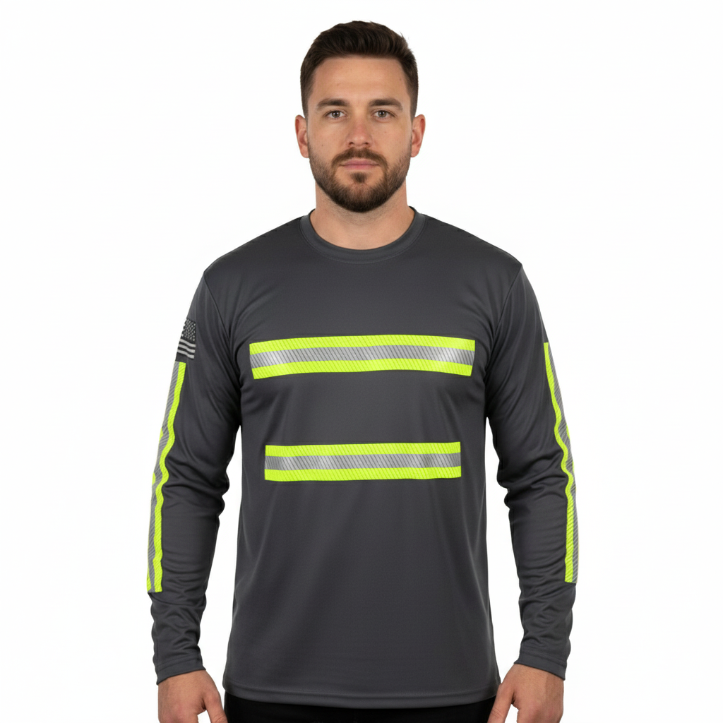 ANSI Class 2 Grey Reflective Long Sleeve Safety Shirt w/ Hi Vis Yellow Strips (NO LOGO) (Gen2)