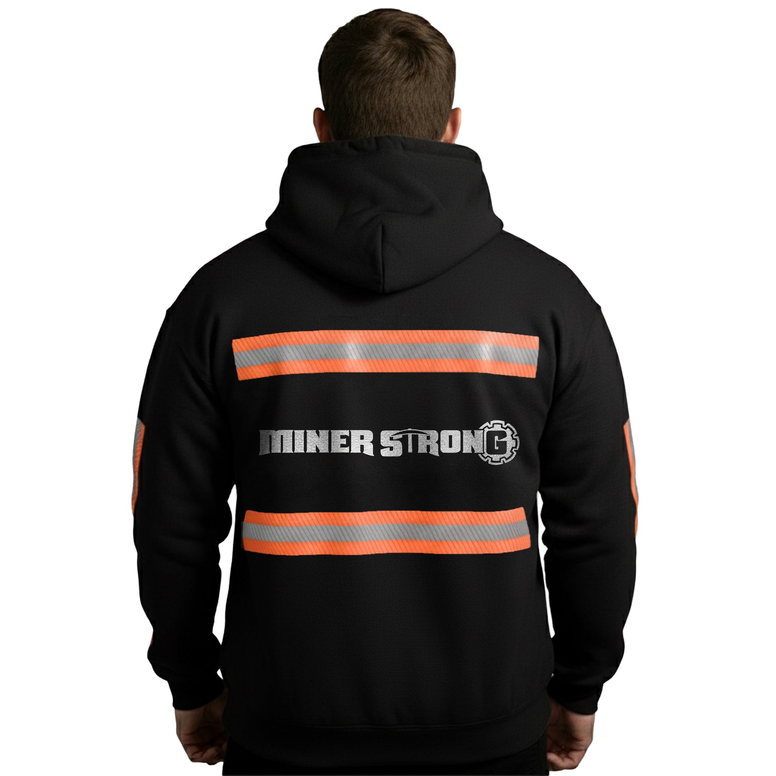 ANSI Class 2 Miner Strong Black Reflective Hoodie w/ Hi Vis Orange Strips (Gen2)