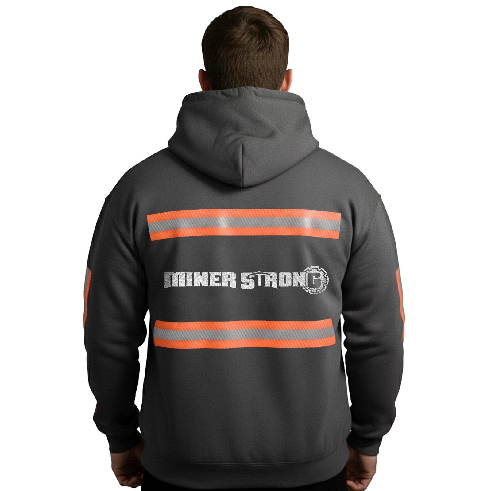 ANSI Class 2 Miner Strong Grey Reflective Hoodie w/ Hi Vis Orange Strips (Gen2)
