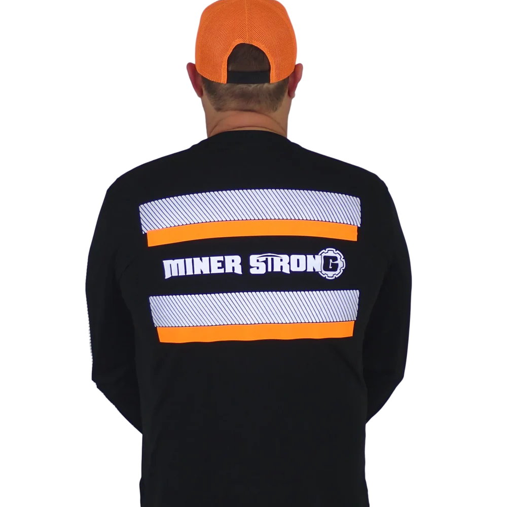 Represent Miner Strong in style with our reflective long sleeve safety shirt. This essential piece of mining apparel is designed to keep you safe and comfortable. Whether you're underground, on the surface, or simply out and about, this safety shirt is a must-have. Stay seen, stay safe, and represent Miner Strong with pride.