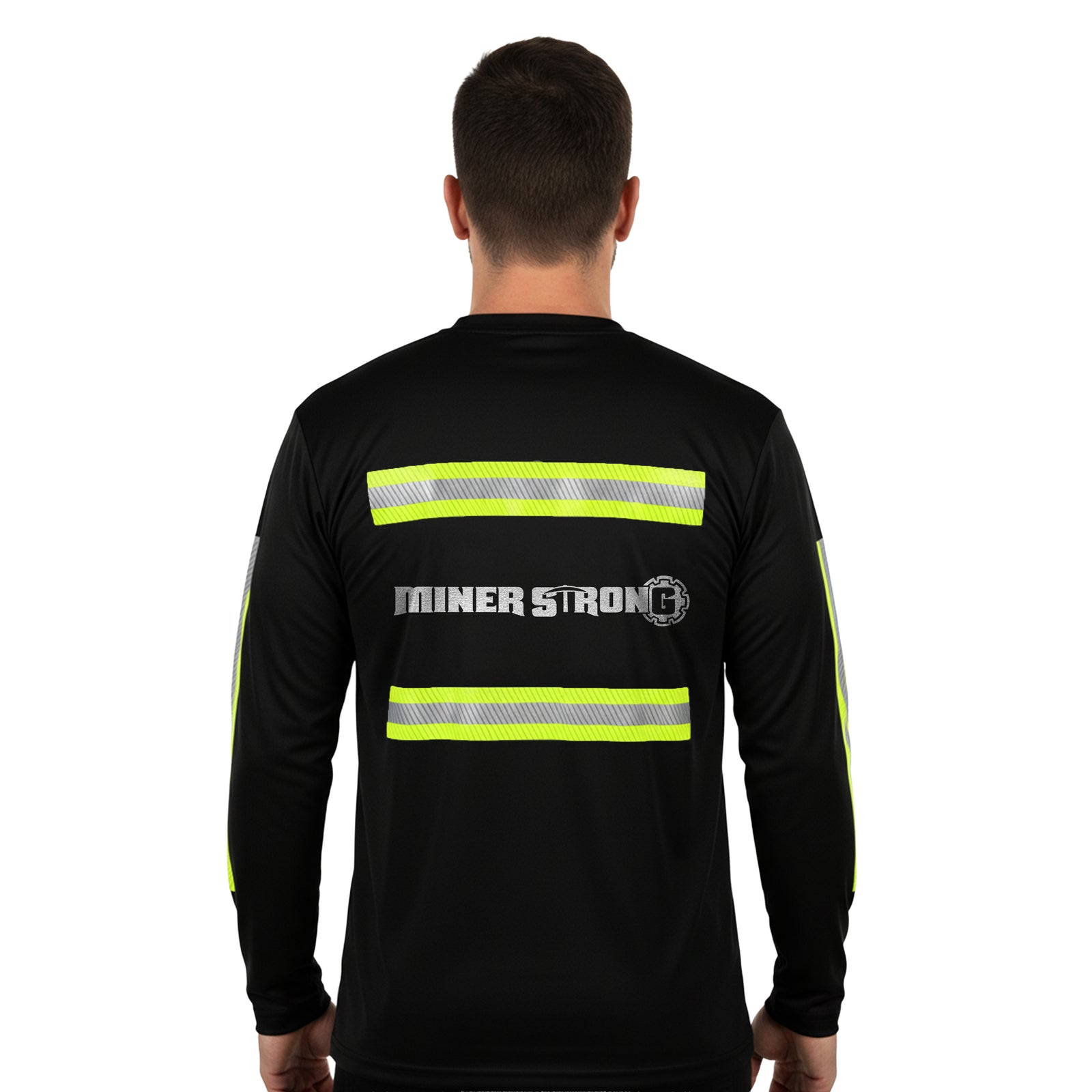 Represent Miner Strong in style with our reflective long sleeve safety shirt. This essential piece of mining apparel is designed to keep you safe and comfortable. Whether you're underground, on the surface, or simply out and about, this safety shirt is a must-have. Stay seen, stay safe, and represent Miner Strong with pride.