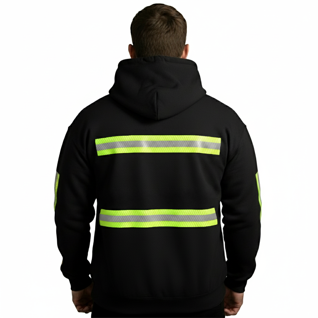 Black Reflective Hooded Sweatshirt with Hi Vis Yellow Strips, ANSI Class 2 (NO LOGO) (Gen2)