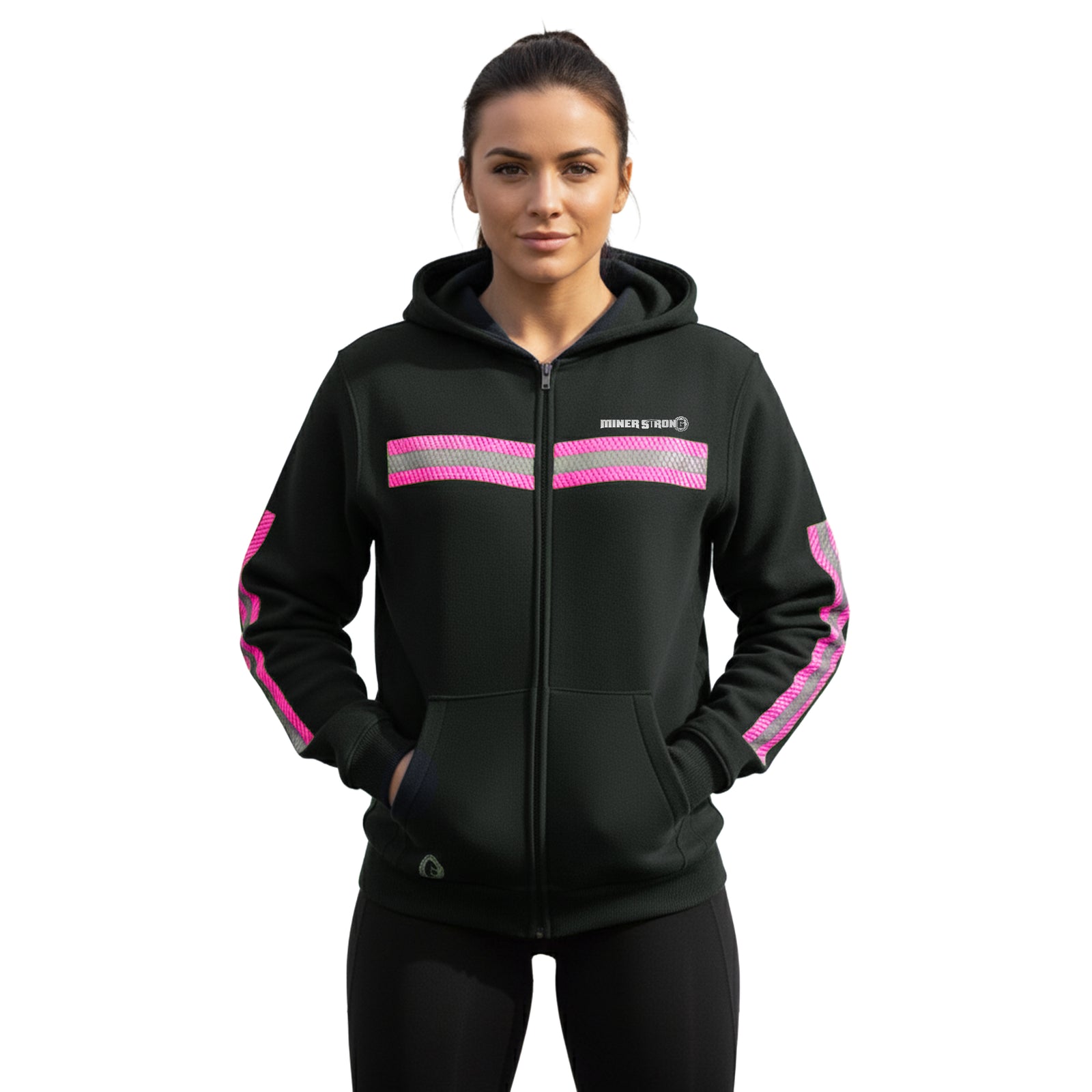 ANSI Class 1 MSG Black Workwear Zip Up (Pink Strips)