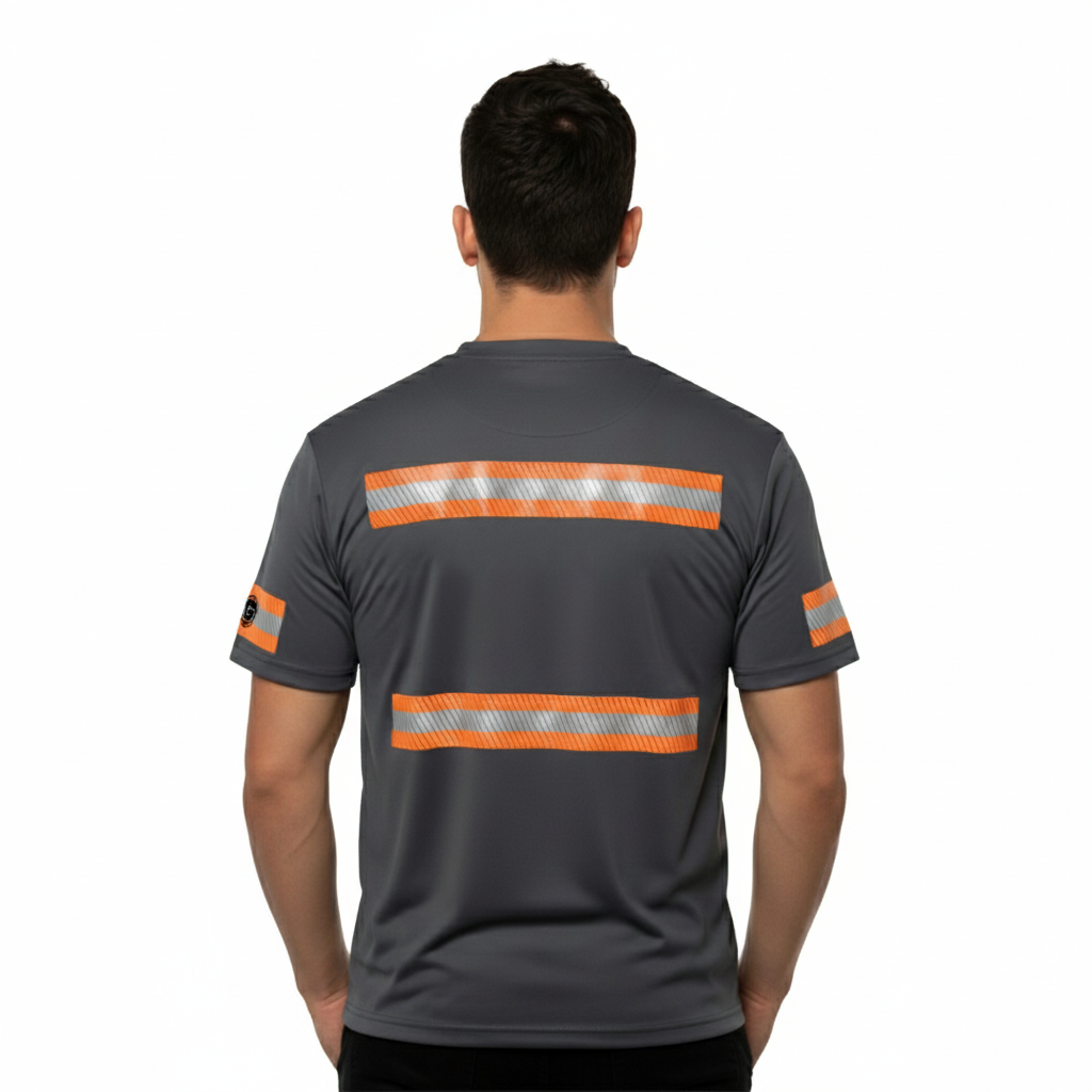 ANSI Class 1 Grey Reflective Short Sleeve Safety Shirt w/ Hi Vis Orange Strips (NO LOGO) (Gen2)