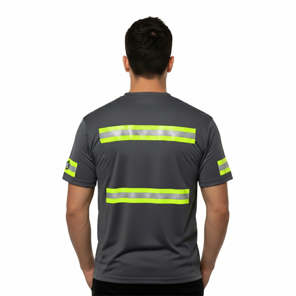 ANSI Class 1 Grey Reflective Short Sleeve Safety Shirt w/ Hi Vis Yellow Strips (NO LOGO) (Gen2)